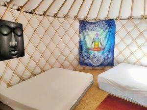 Hébergement : dortoir (2 à 3 personnes), matelas au sol, participation libre